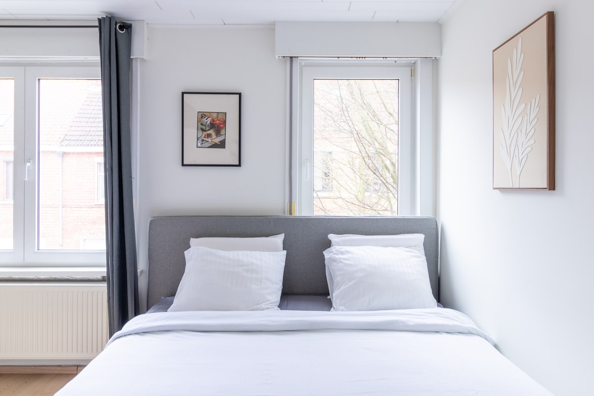 TWO Free Parking Space options in public lots one on the big street around the ring of Bruges (4 min) in a parking lot (3 min) drive away