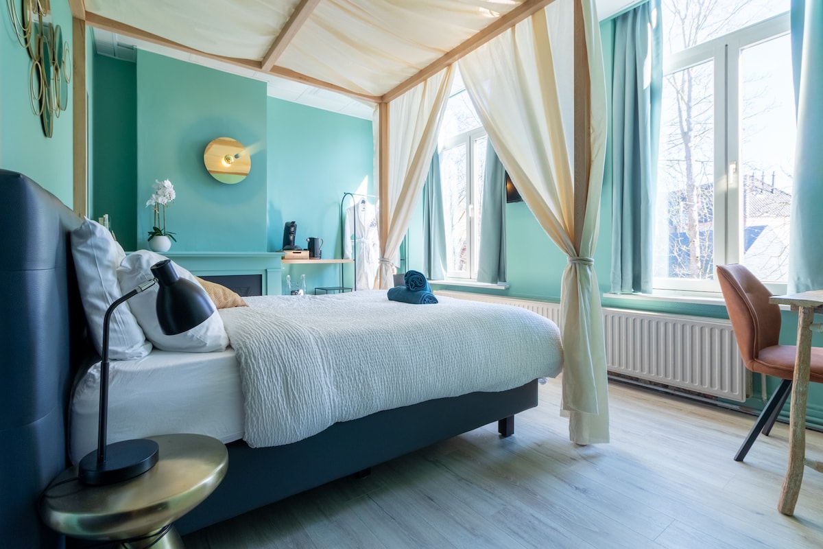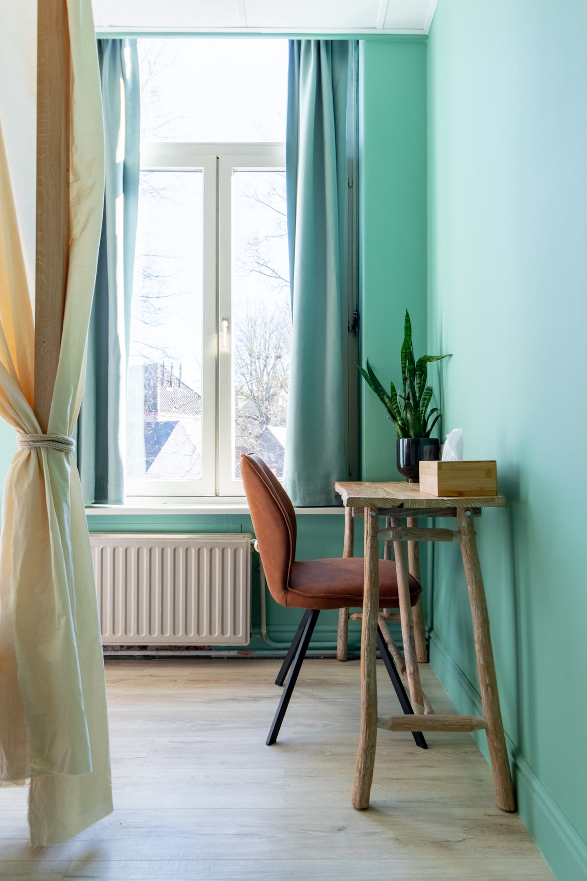 This room is on the 2nd floor of our 11 room self service hotel. It over looks the canal and is in walking distance just 2 min walk (150m) from loads of great breakfast, lunch and dinner spots. Our hotel offers self check in/out but no breakfast or lobby just a top location to explore Bruges.